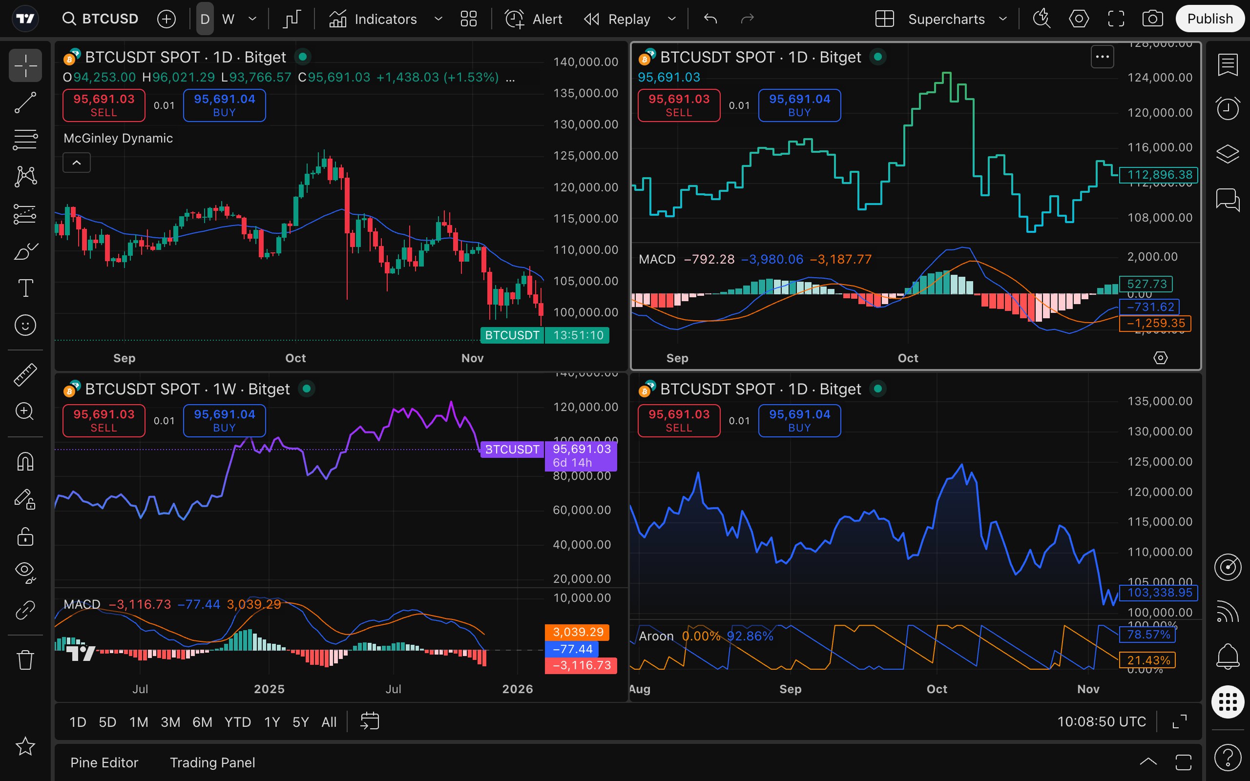 Place trades directly on TradingView Supercharts using your Bitget account.