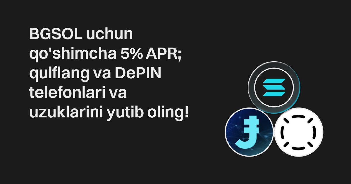 - BGSOL uchun qo'shimcha 5% APR; qulflang va DePIN telefonlari va uzuklarini yutib oling!