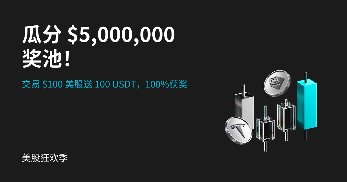 美股狂欢季火爆来袭!交易 $100 美股送 100 USDT,100%获奖,瓜分 $5,000,000奖池!